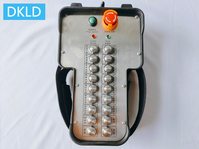 本機型產(chǎn)品型號DH-Z18F,為標準工業(yè)級無線遙控器,遙控距離100米半徑,具備12個不銹鋼按鍵,按鍵直徑18mm,觸感良好,可帶手套操作,面板不銹鋼材質(zhì),結(jié)構(gòu)強度高,抗摔打、耐擠壓、可承受高溫迸濺無影響。收發(fā)信號執(zhí)行靈敏度達-110dbm,響應(yīng)時差40-65mS,瞬間觸發(fā)、瞬間響應(yīng)執(zhí)行,每個按鍵對應(yīng)接收器端1路繼電器輸出,無源干接點,觸點容量250V/10A、直流30V/5A,后端可連接PLC、接觸器、繼電器、高低電平觸點、開關(guān)量電磁閥等開關(guān)量控制回路。